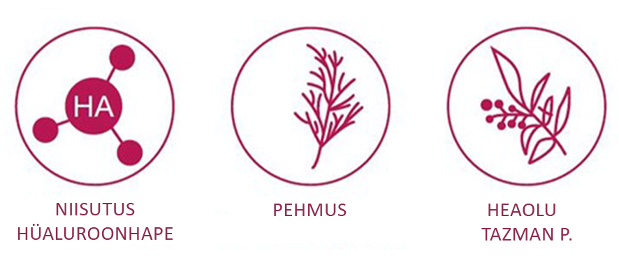 - Hüaluroonhape: tugev niisutaja, vähendab peeneid jooni ja kortsukesi.